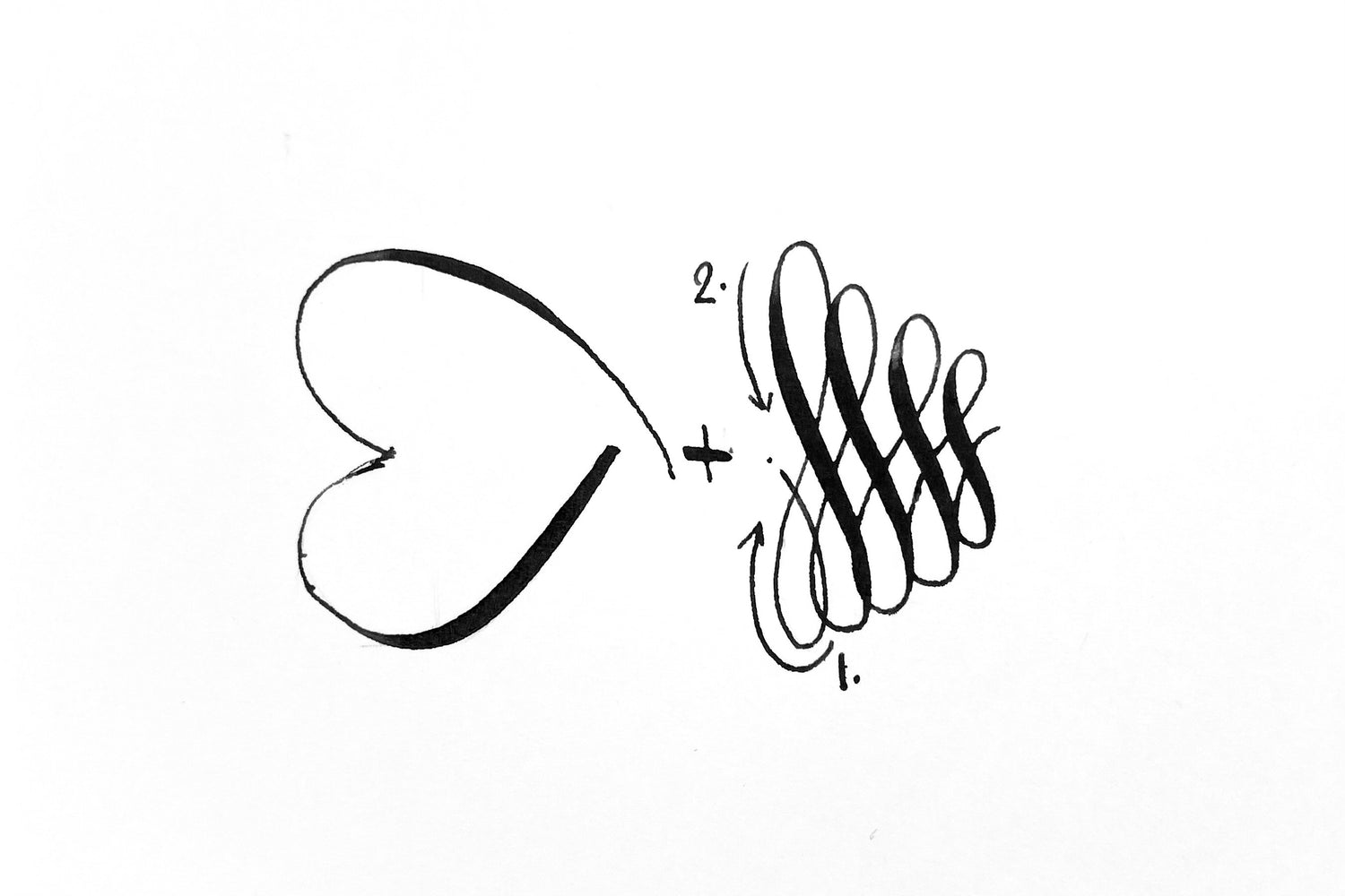 Two basic, almost symmetrical strokes form the heart. Explore varying pressure on the downstrokes to create different flex swells