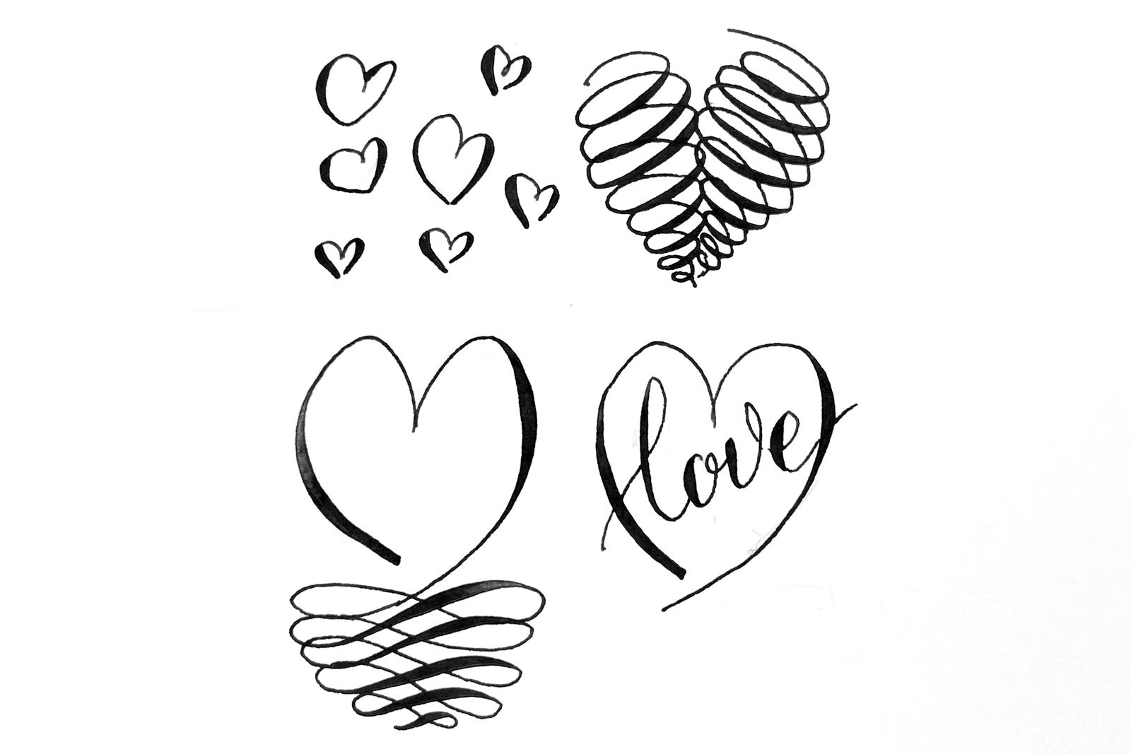 Combine the three strokes to create the basic heart motif. Once it's dry, it's the perfect space to enclose some lettering. Try the word 'love' to fit the theme!