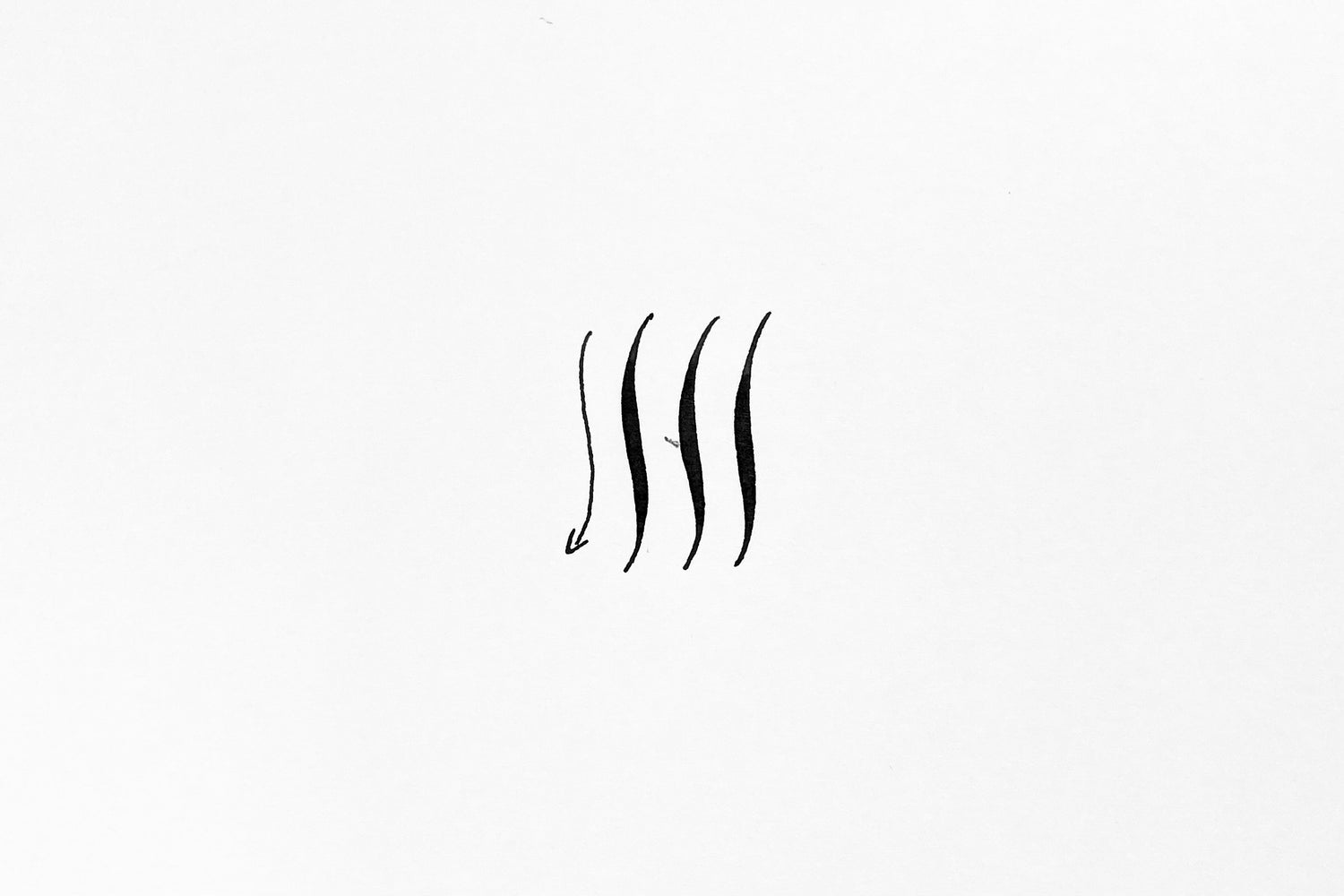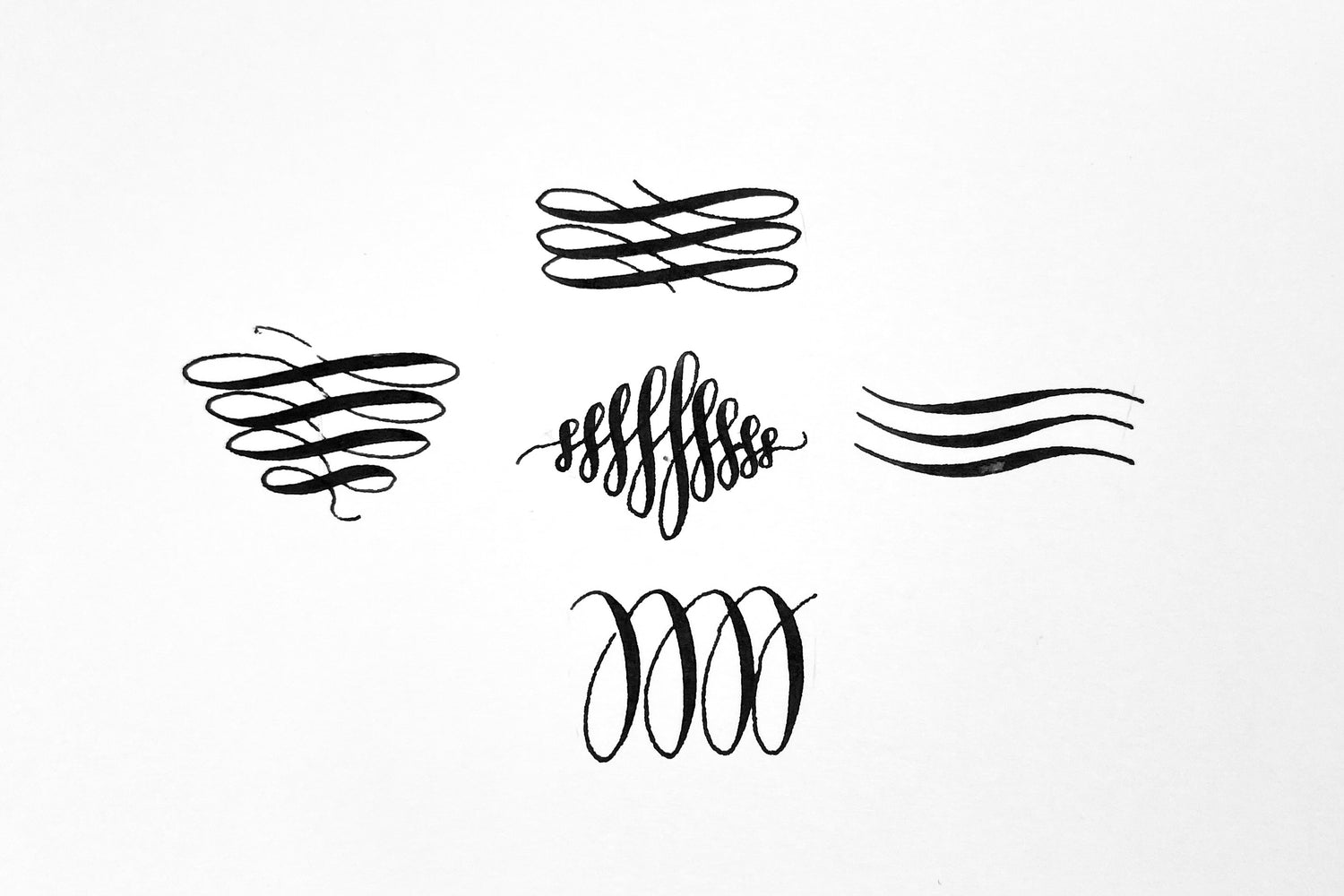 Create flex swells by pressing down on your flex nib while drawing a stroke downwards on the paper, towards your body.