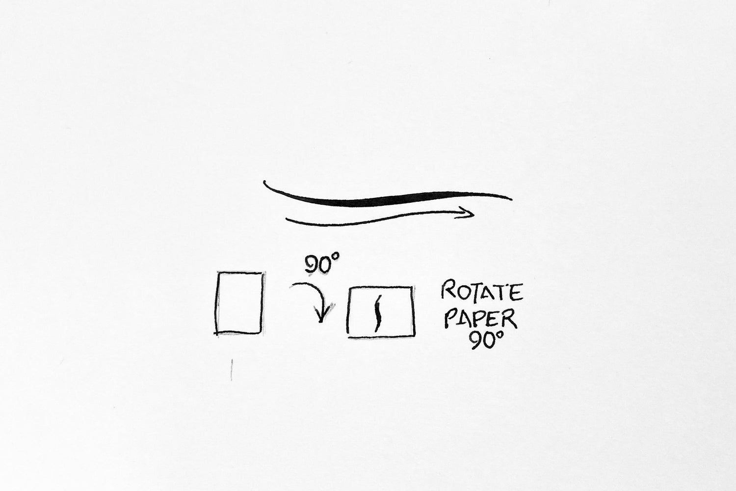 When creating horizontal strokes with flex swells, it's easiest to turn your paper 90 degrees and use the same curved swells downstroke movement.