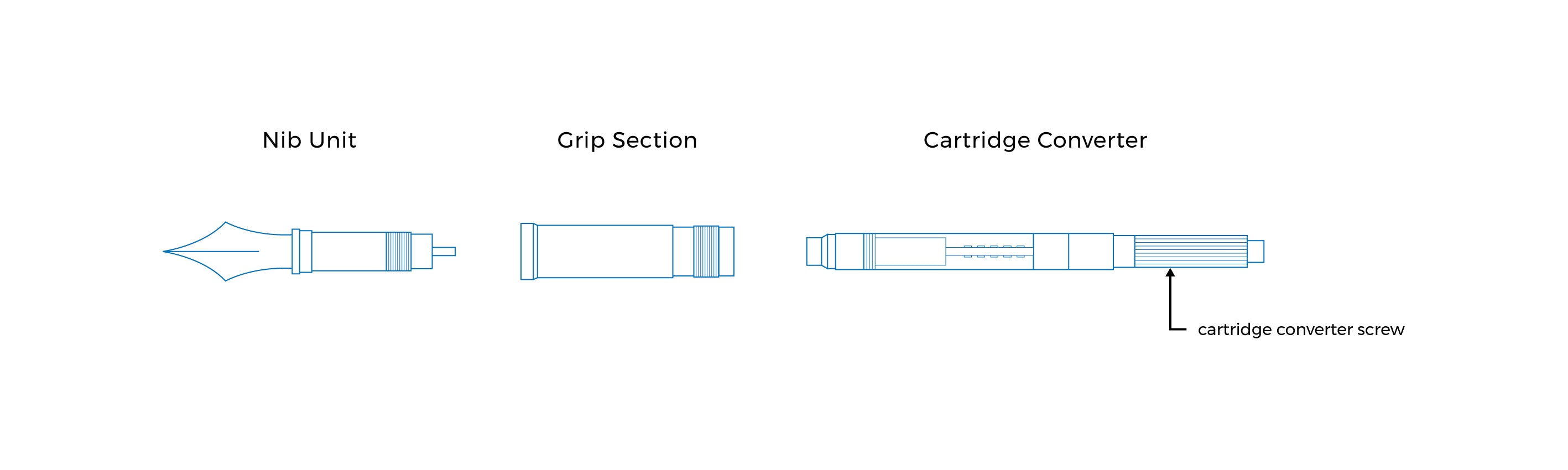 - The nib unit consists of the nib, the feed and a threaded housing.