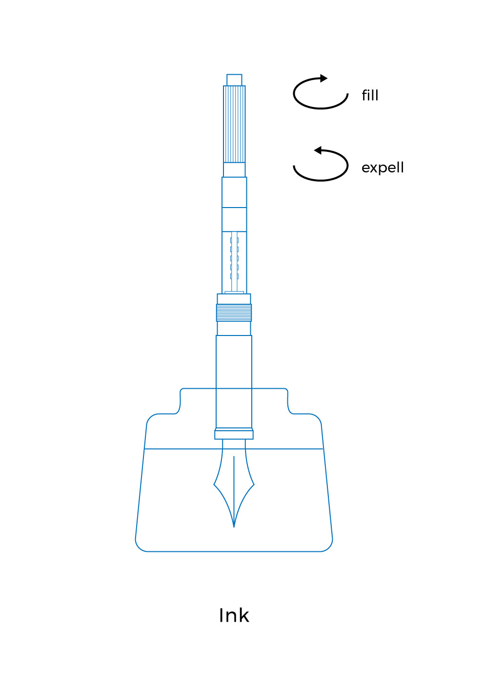 - To get a really full fill, rotate the cartridge converter screw anti-clockwise (with the nib still submerged) to expel the ink and then clockwise to draw up ink again. Repeat a couple of times until fully filled.