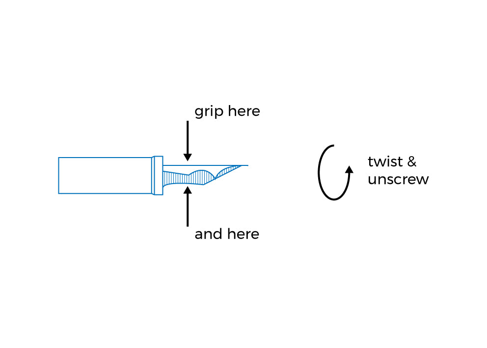 - Rotate anti-clockwise to unscrew the nib unit and remove it from the section.
