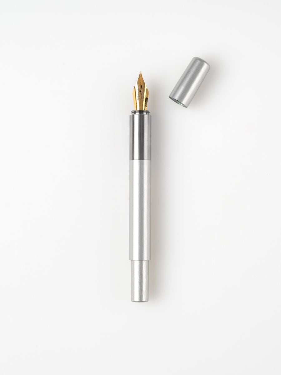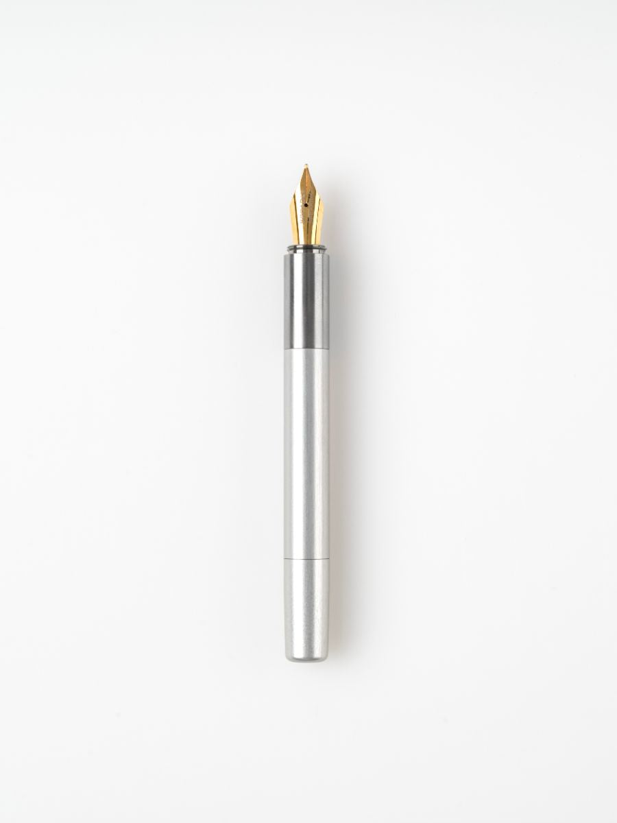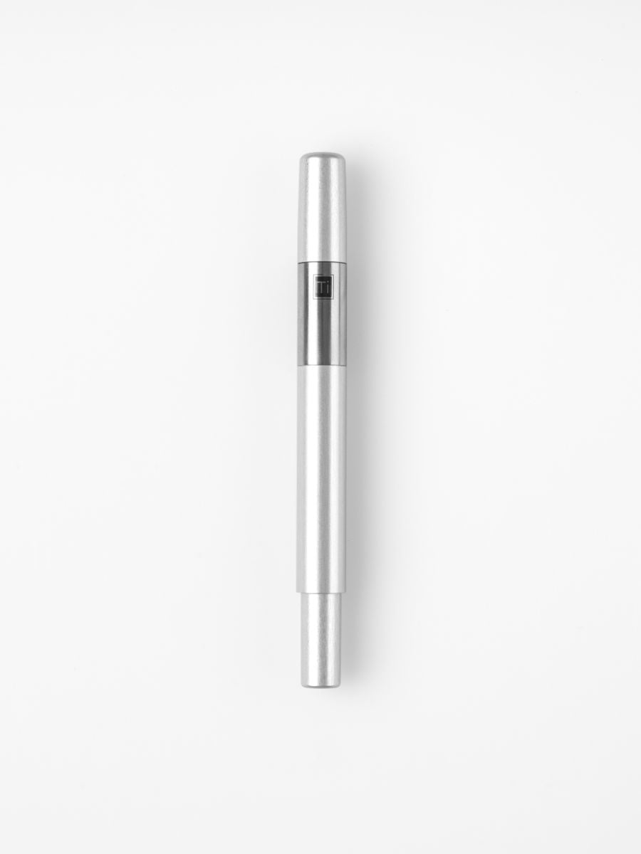 Introducing L130 Titanium Special Edition. Our lightest pen so far at 24 gms. With a grip section precision machined from aerospace grade titanium. Matched with a clear anodised silver aluminium barrel and cap. Understated. Simple. Perfectly balanced. Purposefully designed for long sketching and journaling sessions. Monochrome to the max, the soft contrast of the titanium and aluminium hides a surprise. Twist open the cap to reveal a 24 karat gold plated stainless steel nib. For that unexpected splash of playfulness. Available with your choice of fine, medium, broad or zoom nibs.