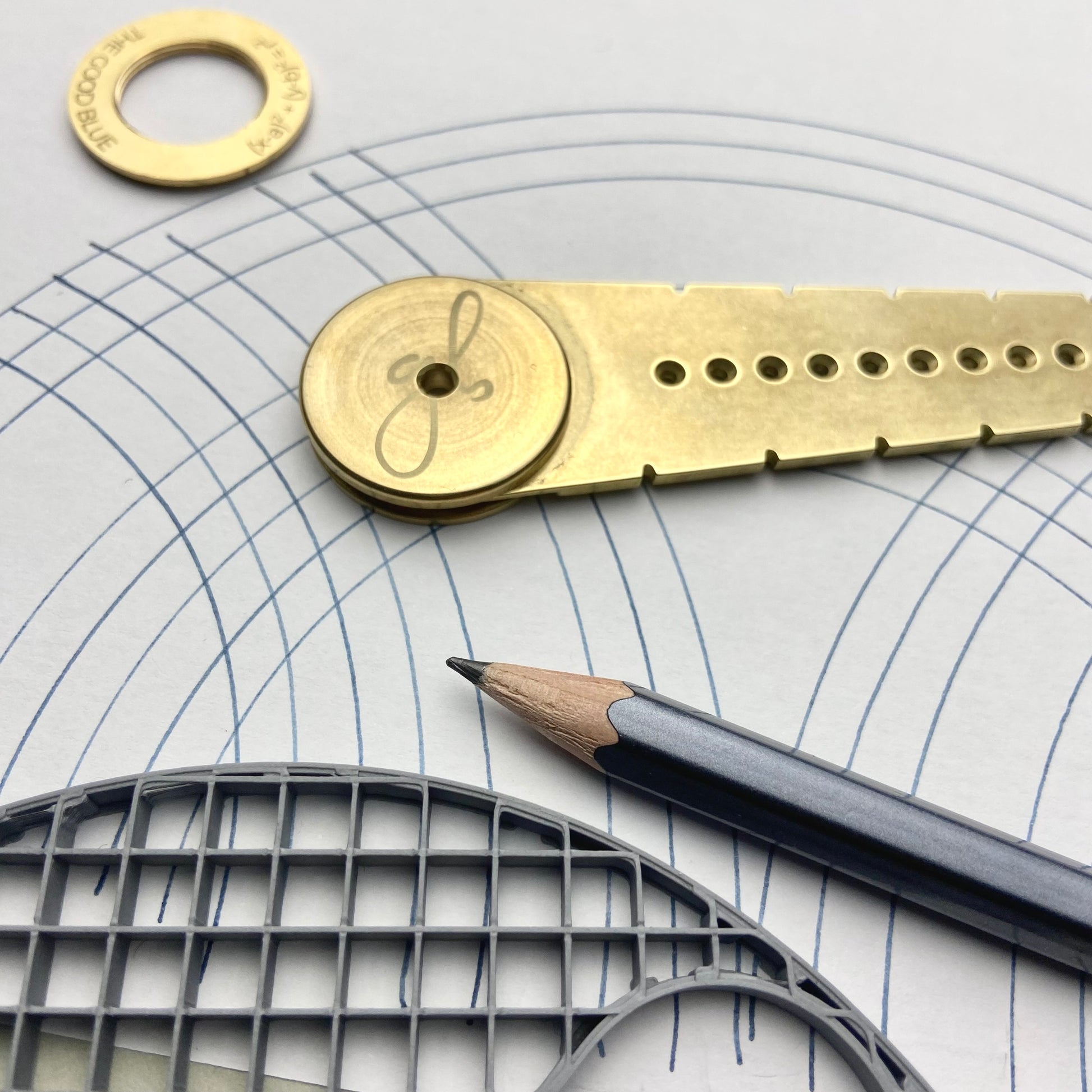 Ah; circles! Perhaps the most perfect geometry. And now you can draw them seamlessly. With our new Brass Compass.A simple and elegant design that lets you draw circles with a pencil or a fountain pen. Without fumbling, hole poking clumsiness. Just position and hold down the central disc, insert the writing tool of your choice into a guide hole and rotate. Quick, simple, easy! Measuring in at under 12 cm long and 0.5 cm thick it's perfect for circles-on-the-go. And the natural brass will age and patina beautifully over time, making the compass uniquely yours.