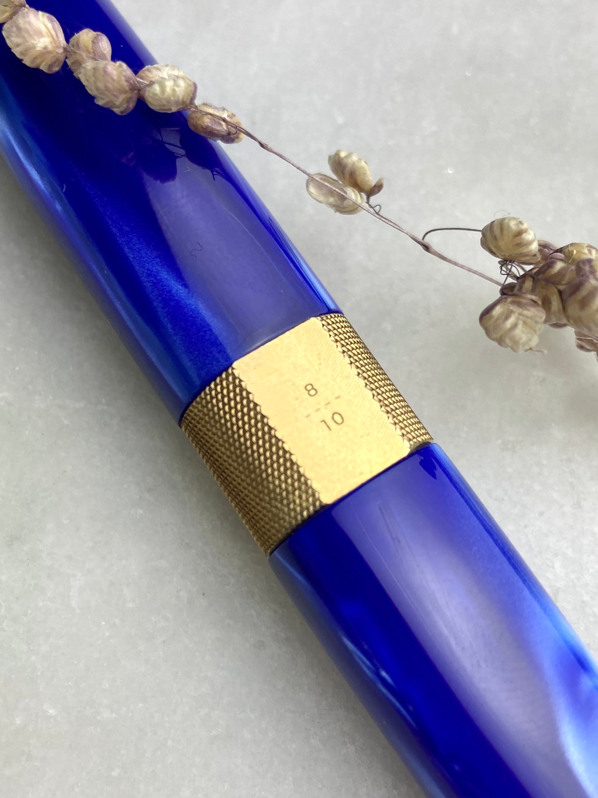 The center of mass of the pen sits in the brass grip section to allow a neutral balance and better control of writing pressure for flex.